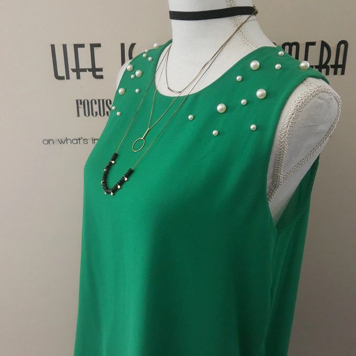 Tunique verte perlée  sans manches taille unique jusqu’au 40 - photo numéro 4