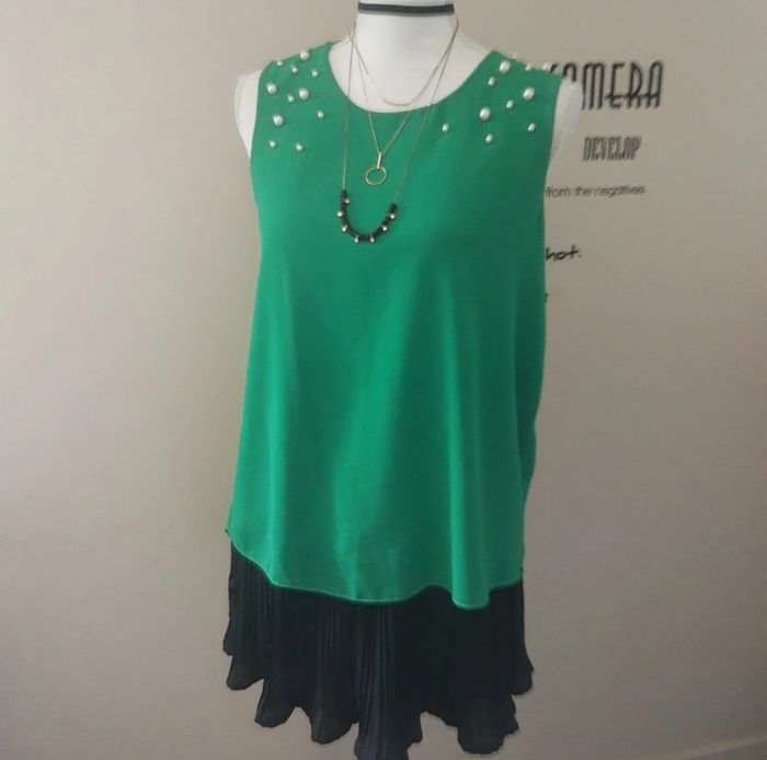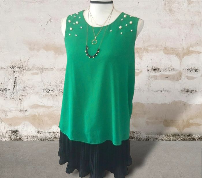 Tunique verte perlée  sans manches taille unique jusqu’au 40 - photo numéro 1