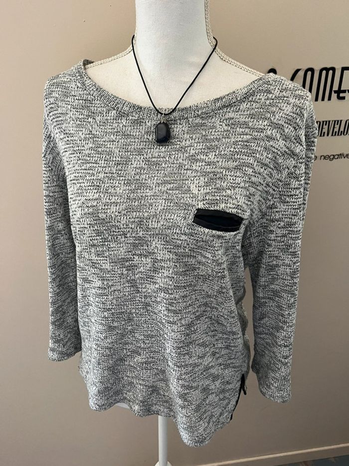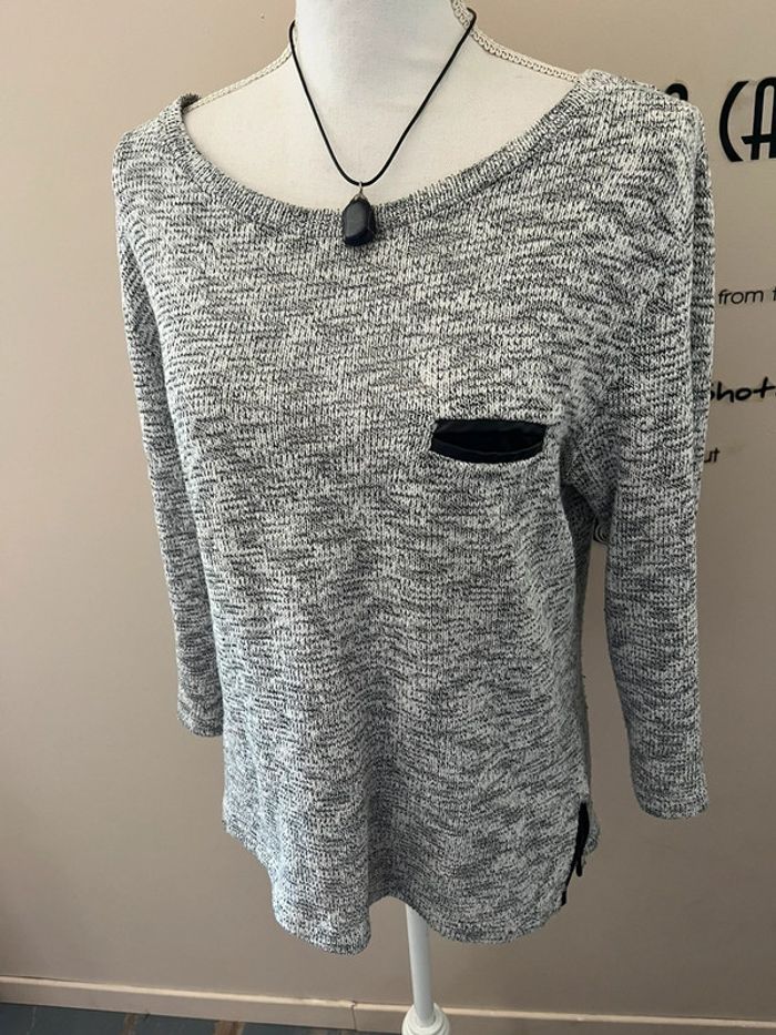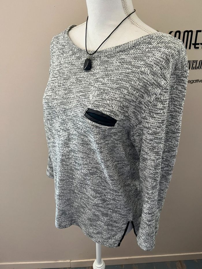 Pull chiné marine et blanc coupe marinière tunique 42/44 - photo numéro 3