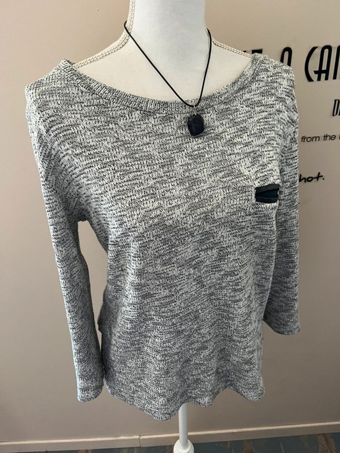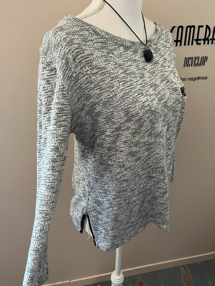 Pull chiné marine et blanc coupe marinière tunique 42/44 - photo numéro 9