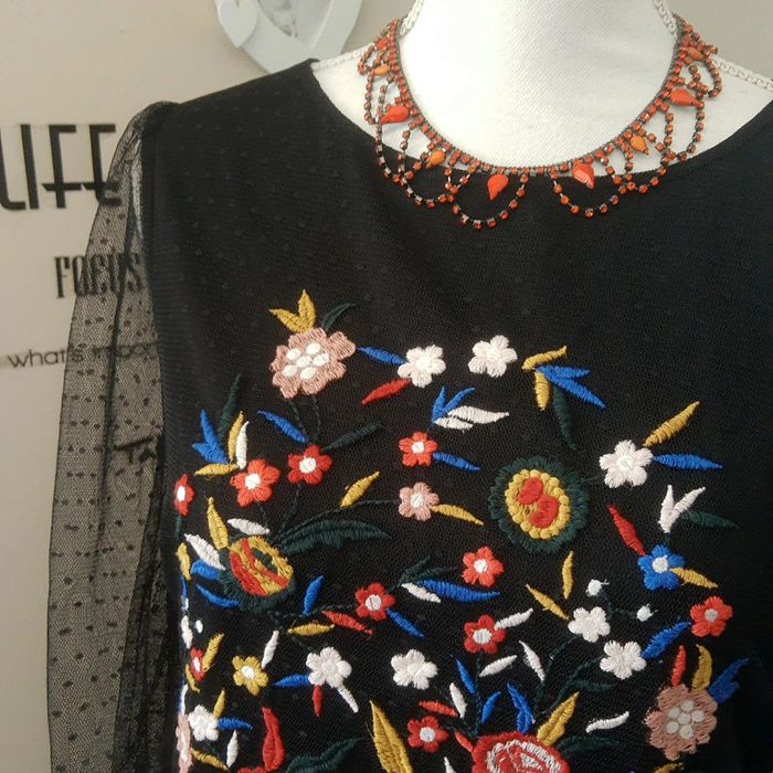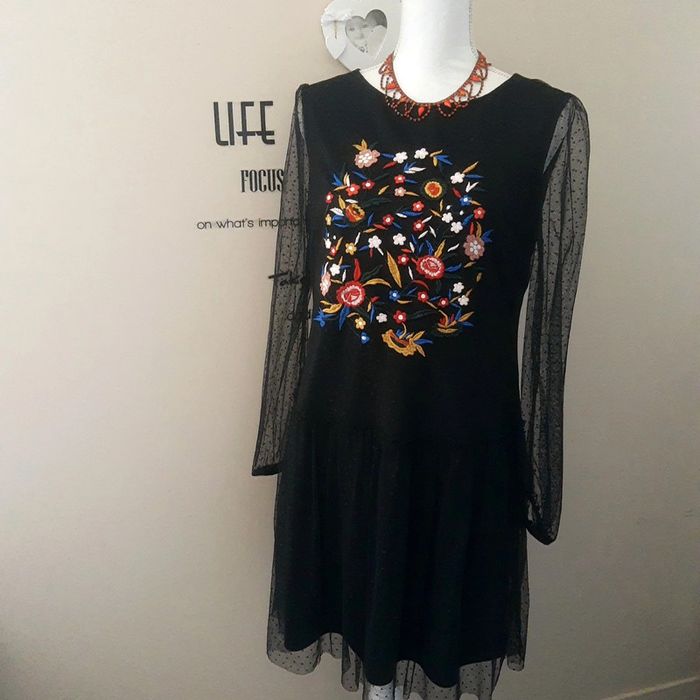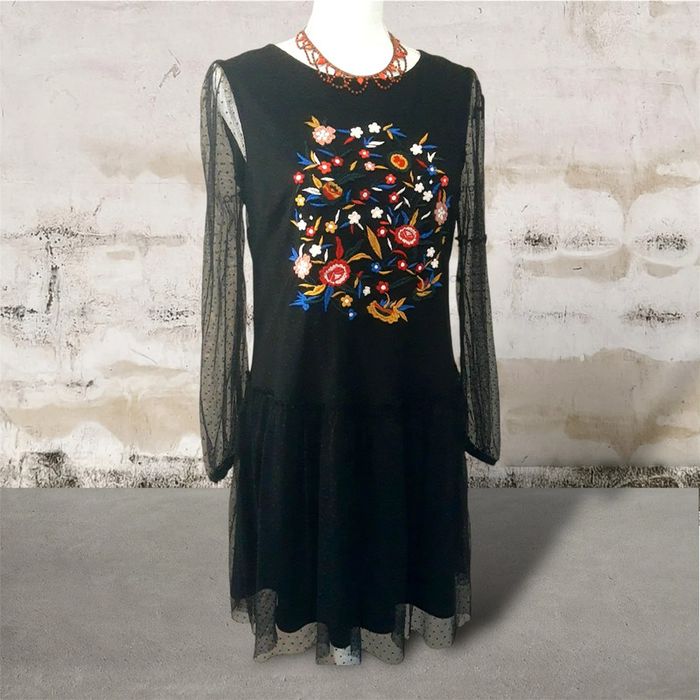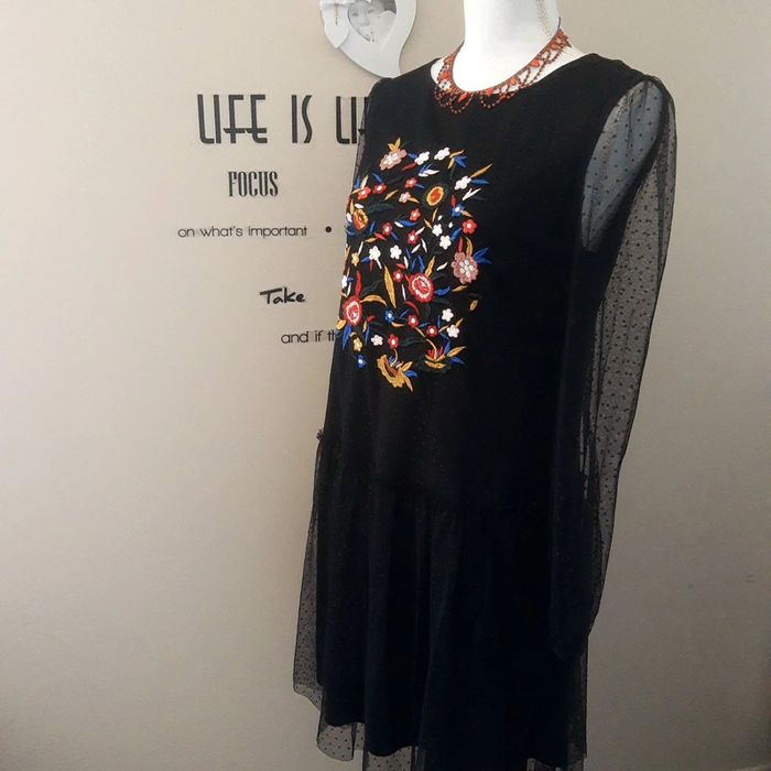 Superbe robe de soirée chic , cérémonie, noire en voile plumetis doublée. Les manches longues sont transparentes Devant de jolies broderies fleuries colorées. Longueur midi (mesures aisselles, épaules, hanches et longueur en photo prises à plat à l'envers sur les coutures ) Taille M Excellent état aucun défaut Idéale pour une soirée importante, une fête, cérémonie, mariage etc.. Très chic Envoi rapide et soigné 👍 Nombreuses autres jolies robes modernes, classiques ou vintages dans mon dressing. Pensez à y jeter un œil et à faire des lots pour bénéficier des remises automatiques enregistrées et économiser les frais d’envoi 👌 Mes autres robes 👗 : #cloclodalodress CONDITIONS DE VENTE N'hésitez pas à poser vos questions avant achat car je réponds volontiers et je suis très disponible mais je n'accepte pas les retours ensuite sauf erreur de ma part bien sûr ⚠️ Bon shopping à tous 🤗 #misaison #robemisaison #chicmisaison #robevoile #plumetis #robevolants #tulle #broderies #voilenoir #robemancheslongues #robefroufous #robevoilenoir #robenoire #robevolants #robeplumetis #robepatineuse #robenoireclasse #robenoire #voilenoir #plumetisnoir #robeévasée #robemidi #robegenoux #robekiabi #kiabi38 #robeboheme #robepatineuse #mousseline #voile #dentelle #doublée #manchestransparentes #robepatineuse #robe38 #robelongue #dentellenoire #robemidi #robegenoux #dentellenoire #babydoll #robebabydoll #fête #soirée #cérémonie #robeceintrée #froufrous #boheme #bohemechic #styleboheme #robefleurie #robenoirefleurie #manchesvoile #robechic #robemariage #mariagehippiechic #mariageboheme
