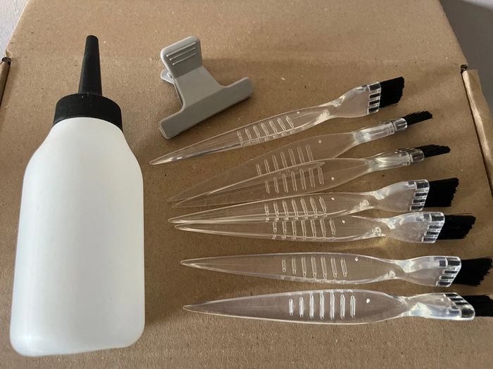 Lot d’accessoires soins cheveux : pinceaux application couleur et flacon mélangeur neufs - photo numéro 1