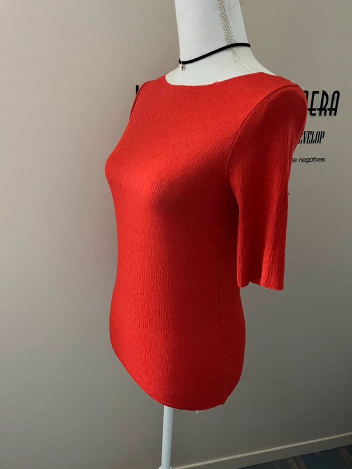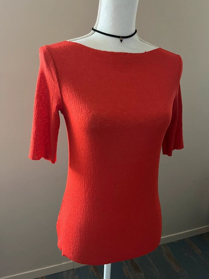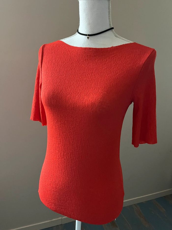 Jolie blouse très pratique, extensible , infroissable , rouge lumineux . Idéale pour la valise des vacances