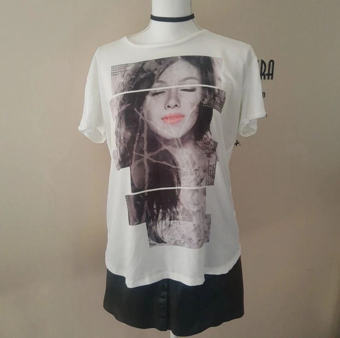 Collection printemps été ☀️ Préparons les beaux jours 👍 Très jolie blouse blanche manches courtes état impeccable, Bi matière. Matière fluide, légère et agréable à porter. Très belle qualité 👍 Matière différente devant et derrière (viscose /polyester) Impression visage stylisé devant clouté par endroit Dos et manches unies blanc Marque Esprit taille L ici sur mon mannequin en 38 40 sans difficultés. La jupe cuir noir Zara n'est pas disponible à la vente mais beaucoup d’autres jolies jupes dans mon dressing 😉 Mes autres hauts, t-shirt, tuniques, blouses, chemises : #cloclodaloshirt Envoi rapide et soigné 👍 CONDITIONS DE VENTE N'hésitez pas à poser vos questions avant achat car je réponds volontiers et je suis très disponible mais je n'accepte pas les retours ensuite sauf erreur de ma part bien sûr ⚠️ Pensez aussi à faire des lots pour économiser les fdp 💡 Réductions possibles pour l'achat d'un lot de plusieurs articles. Bon shopping à tous 🤗 #blouseblanche #blousemanchescourtes #blousefluide #blouse40 #blousechic #blouseimprimée #zen #zenattitude #bimatière #coton #beige #rosepoudré #blousepastel #dream #dreamwear #visage #impressionvisage #blouseesprit #tshirtamotif #tshirtviscose #tshirtzen #tshirtblanc #tshirtfluide #tshirtesprit #tshirt40 #vêtementsesprit #esprit40 #esprit3840
