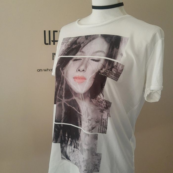 Blouse blanche fluide Esprit manches courtes impression devant taille L - photo numéro 7
