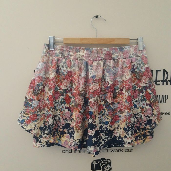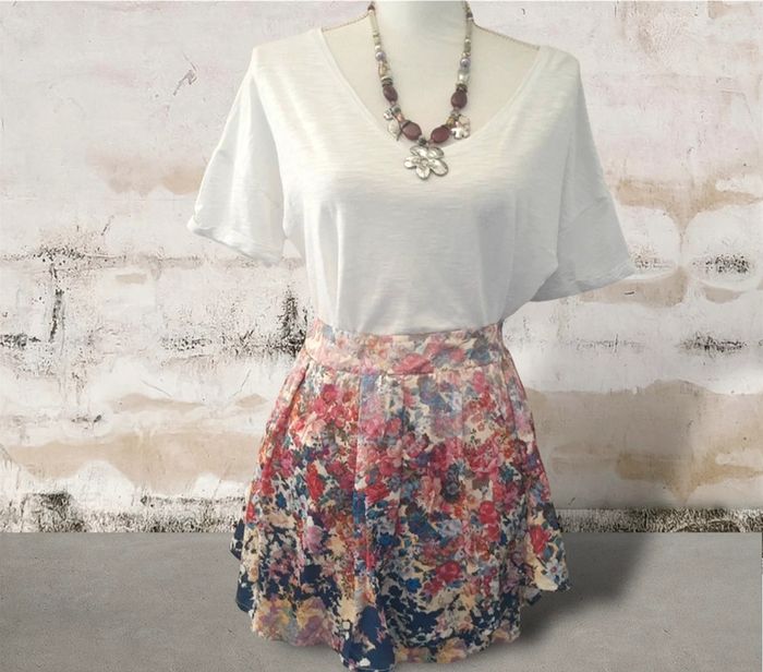 Jupette short en satin fleuri bohème chic Stradivarius taille L - photo numéro 1