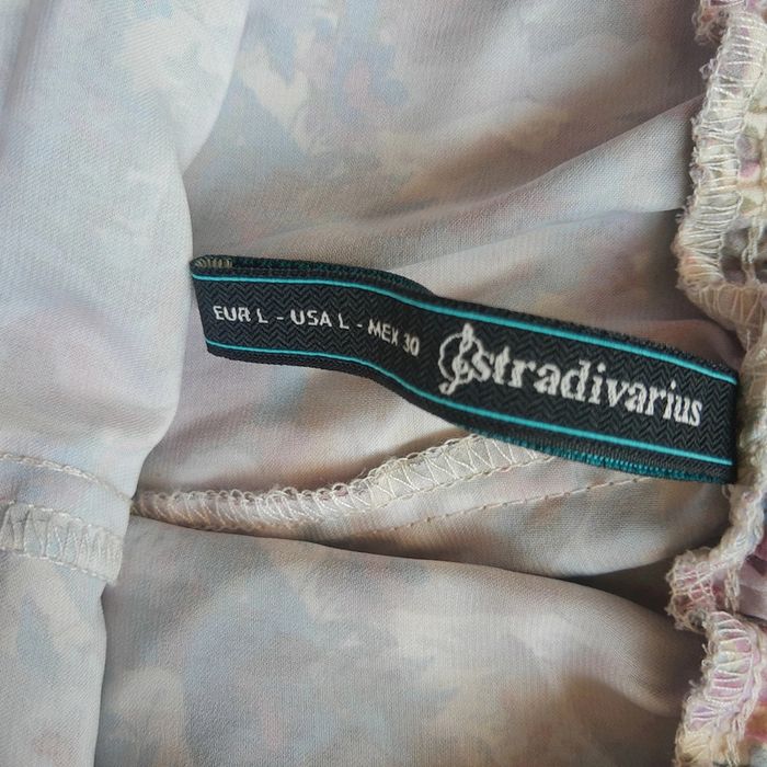 Jupette short en satin fleuri bohème chic Stradivarius taille L - photo numéro 5