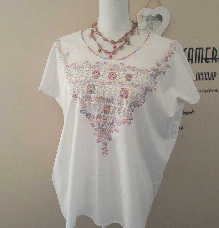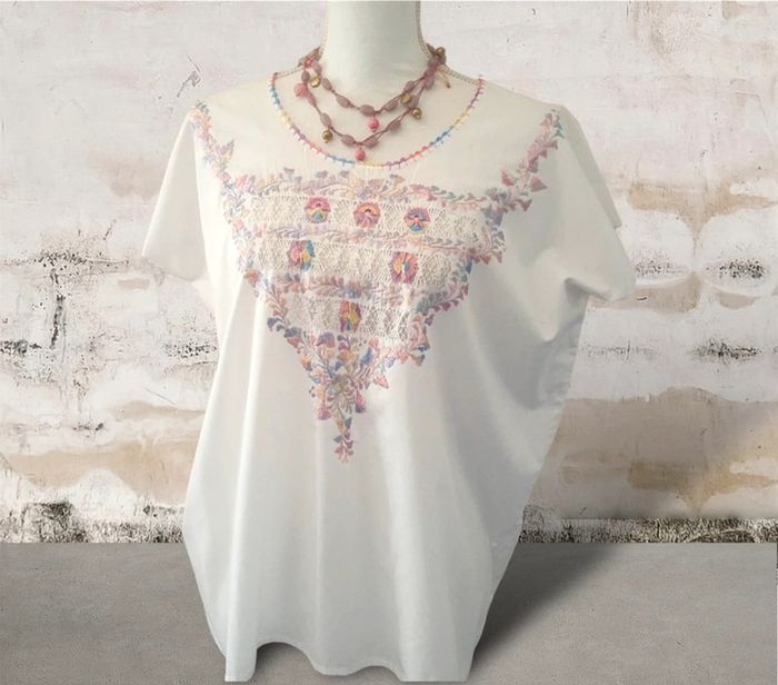 Magnifique blouse blanche en coton brodée ethnique taille unique jusqu’au 42/44 - photo numéro 1