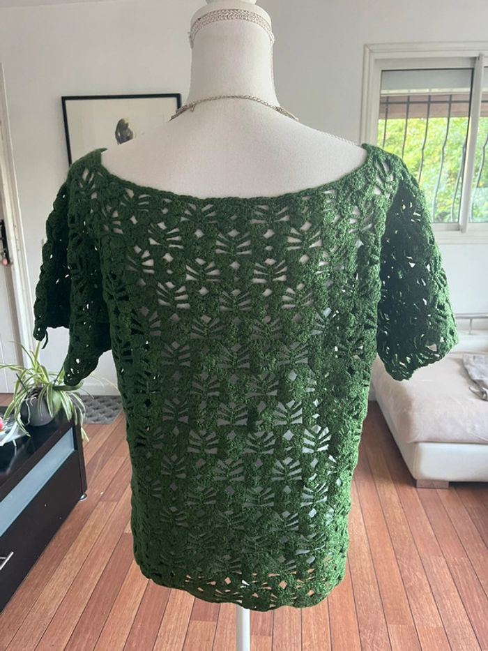 Superbe pull mailles crochet vert sapin fait main - photo numéro 7