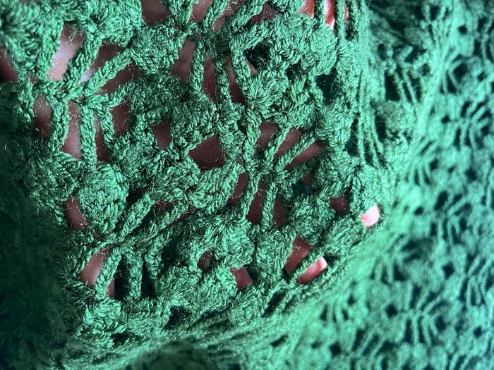 Superbe pull mailles crochet vert sapin fait main - photo numéro 8
