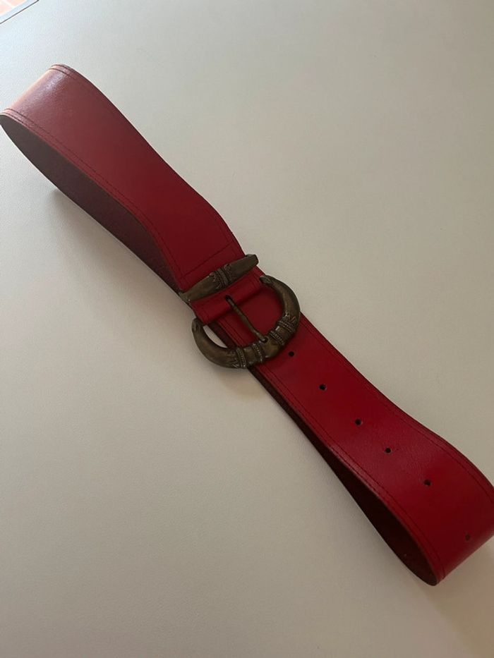 Ceinture rouge cuir véritable de qualité - photo numéro 1
