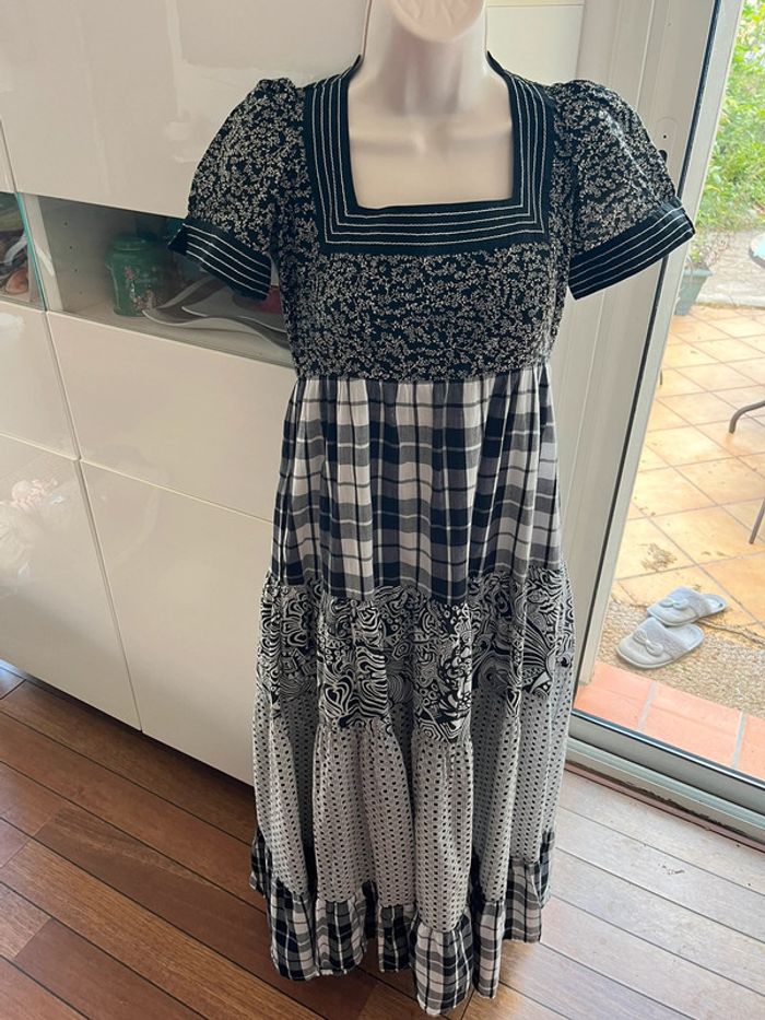 Maxi Robe bohème chic petites manches imprimée motifs noir,gris et blanc . La robe est fluide , légère et doublée . Col carré, robe très longue avec des volants Marque Pepe Jeans taille XS Parfait état aucun défaut Selon les accessoires peut faire très chic pour une soirée, ou cérémonie, une fête ou casual avec des petites baskets blanches . Vendue sans accessoires Envoi rapide et soigné 👍 Nombreuses autres jolies robes modernes, classiques ou vintages dans mon dressing. Pensez à y jeter un œil et à faire des lots pour bénéficier des remises automatiques enregistrées et économiser les frais d’envoi 👌 Mes autres robes 👗 #cloclodalodress N’hésitez à poser vos questions avant achat car je réponds volontiers et je suis très disponible mais je n'accepte pas de retour ensuite sauf erreur de ma part bien sûr ⚠️ Bon shopping à tous 🤗 #robenoire #imprimé #robemanchescourtes #colcarré #robeimprimée34 #robelongue #robefluide #robepepejeans #pepejeans34 #robenoire34 #robenoire #fluideimprimé #robedesoirée #robechic #robetaillexs #maxirobe #robefluide #robetrèslongue #robetall #robe34 #ceremonie #mariage #bureauchic #bureau #fete #soiree #bohème #robeimprimée34 #workinggirl #petiterobenoire #robesoirée #robevolants #soirée34 #fête34 #ceremonie34 #velvetdress #robeboheme #soirée3436 #fête3436 #chic3436 #mariage3436 #cérémonie3436 #weddingdress3436 #workinggirl3436 #robebohèmechic #robecarreaux #robesoireechic