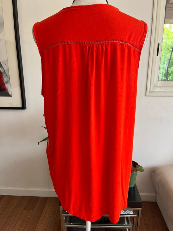 Tunique longue sans manches rouge corail imprimé fleurs - photo numéro 4