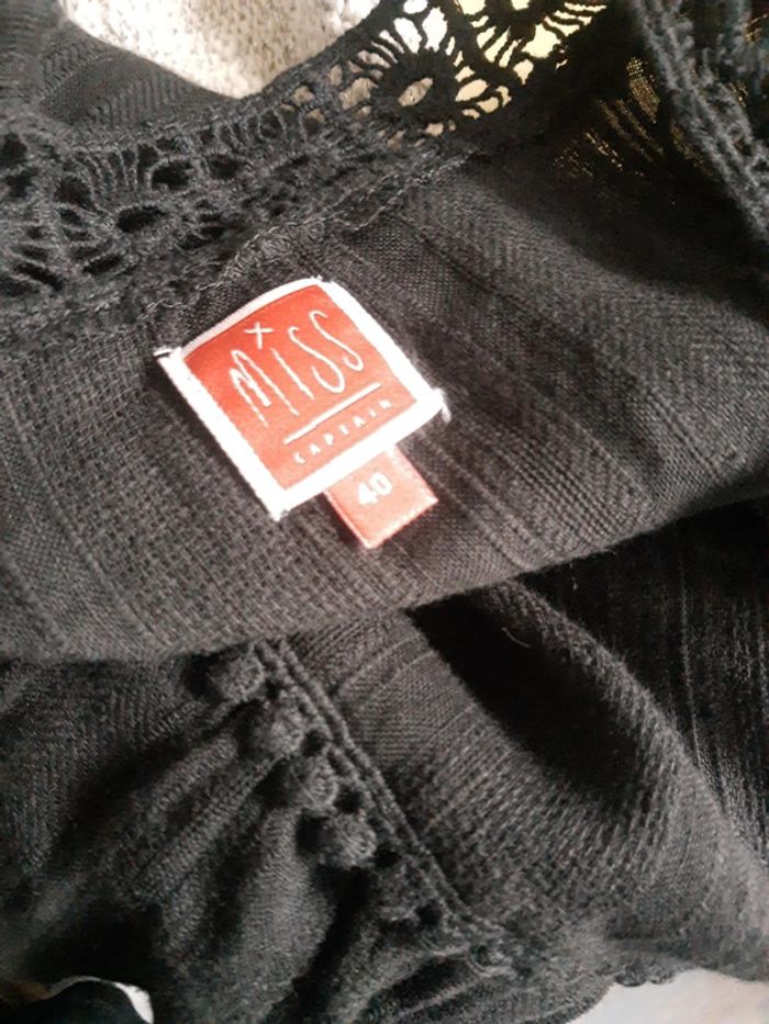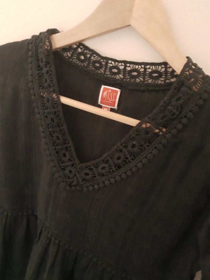 Blouse bohème en coton noir brodé Miss Captain taille 40 - photo numéro 5