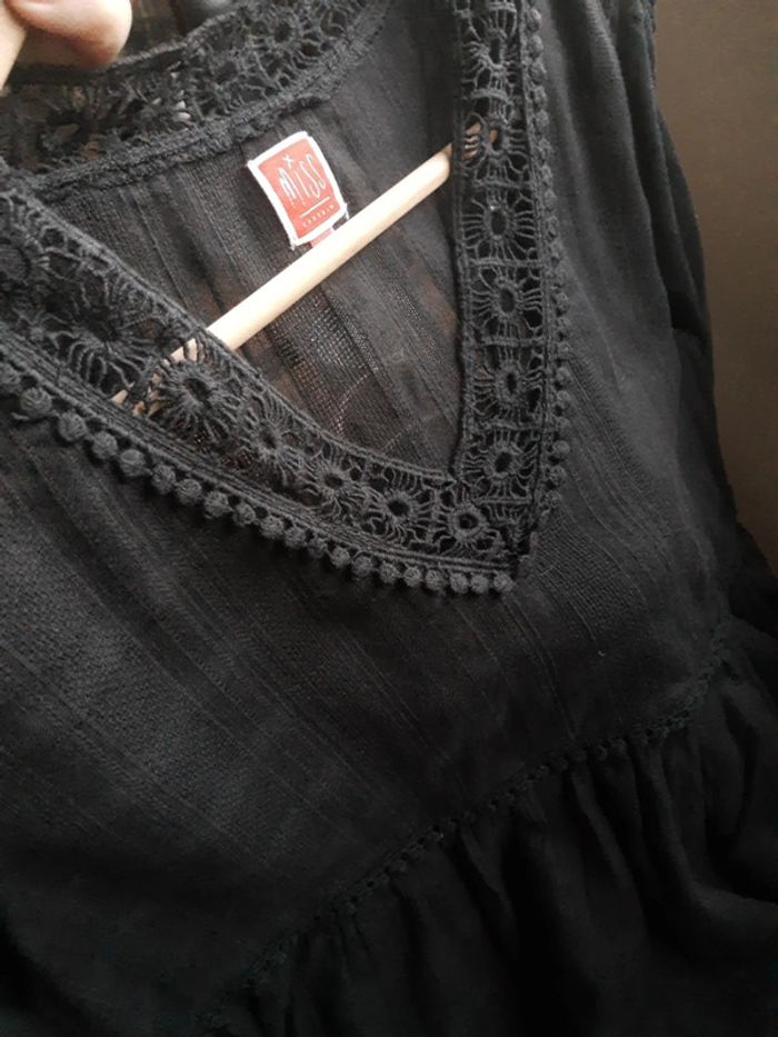 Blouse bohème en coton noir brodé Miss Captain taille 40 - photo numéro 3
