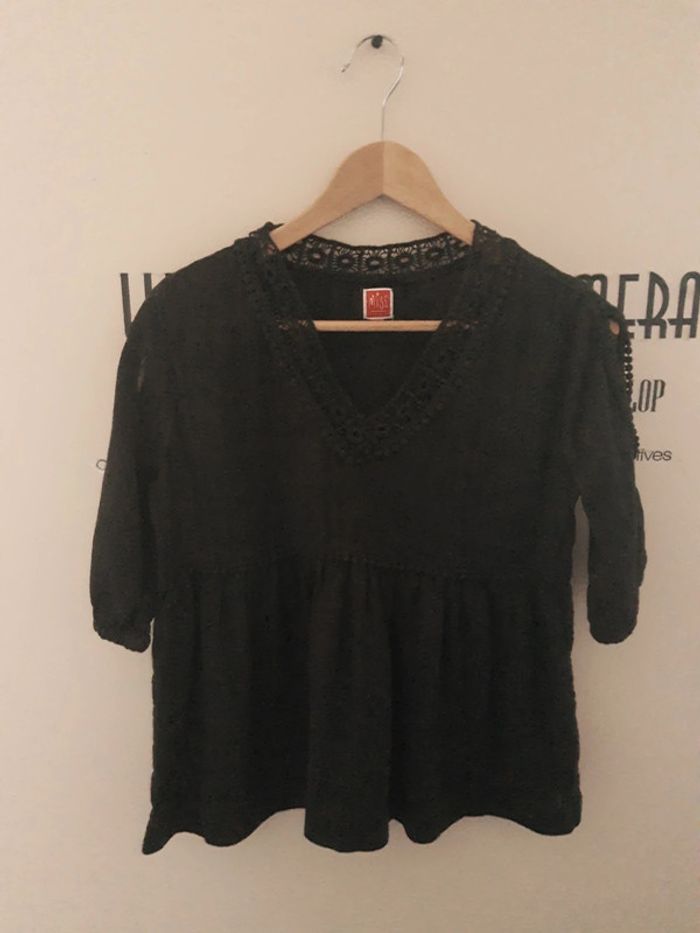Blouse bohème en coton noir brodé Miss Captain taille 40 - photo numéro 1