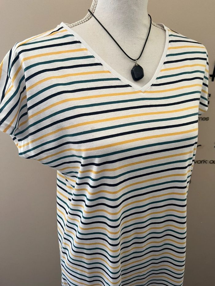 Robe neuve en coton organique rayée col v lire le descriptif taille 42/44 - photo numéro 8