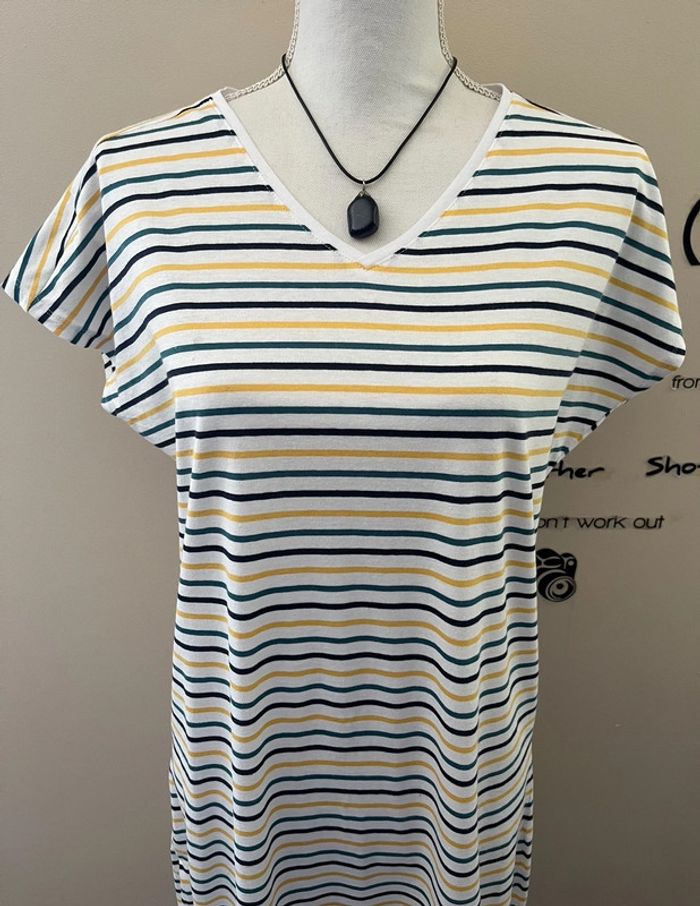 Robe neuve en coton organique rayée col v lire le descriptif taille 42/44 - photo numéro 3