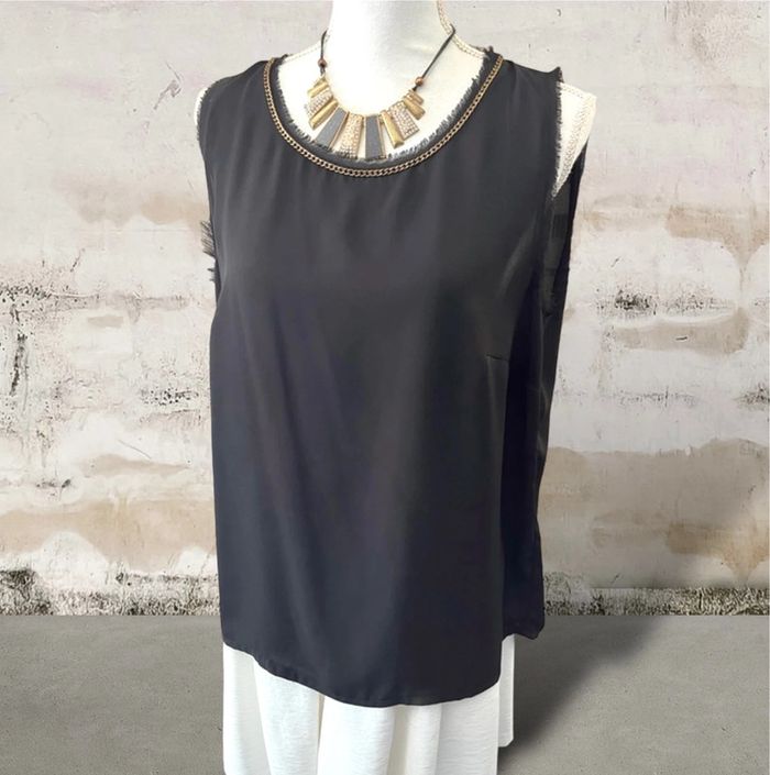 Blouse tunique longue fluide noire sans manches col chaîne dorée - photo numéro 7