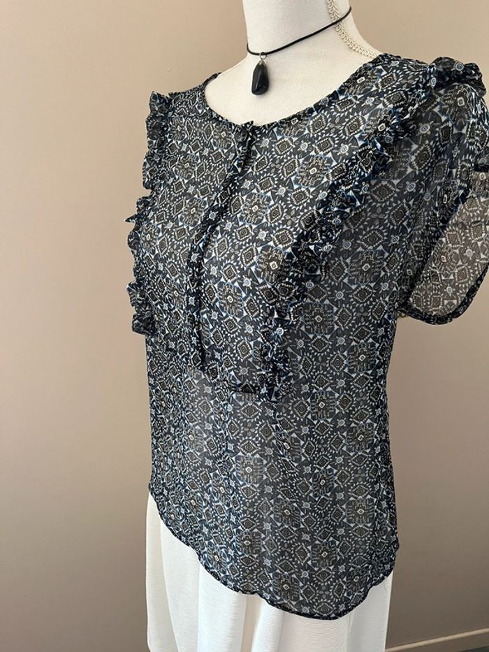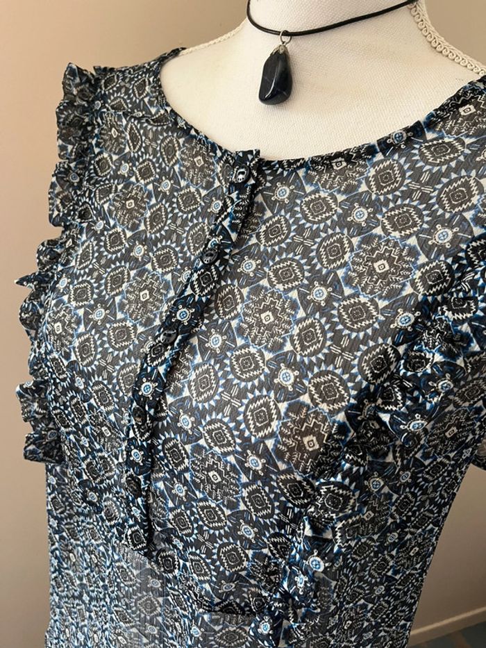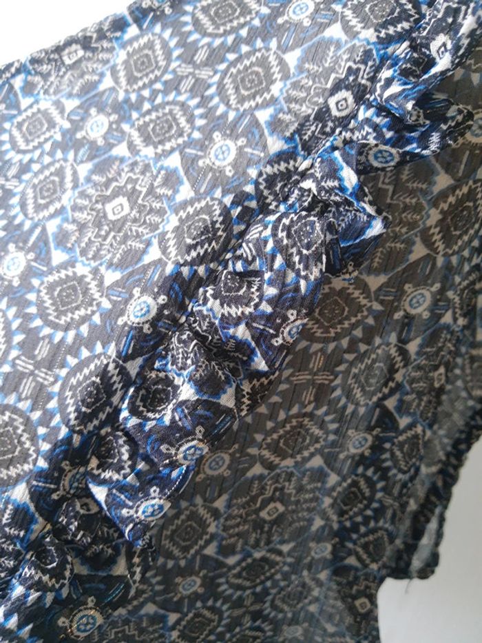 Blouse en voile bleu imprimée manches courtes 46/48 - photo numéro 7