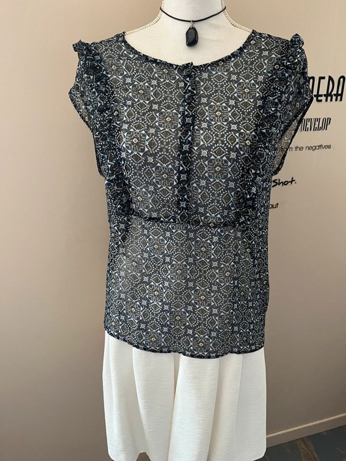 Blouse en voile bleu imprimée manches courtes 46/48 - photo numéro 2