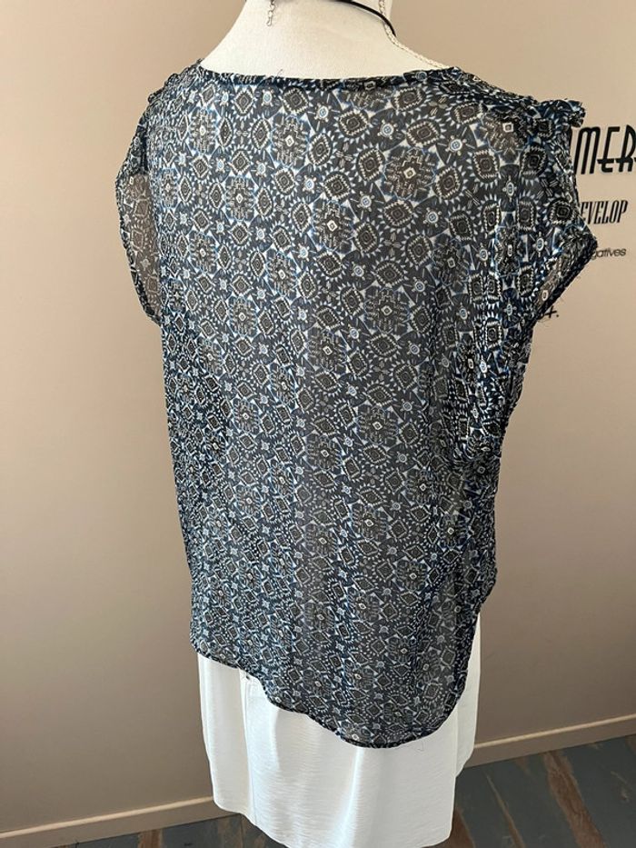 Blouse en voile bleu imprimée manches courtes 46/48 - photo numéro 3