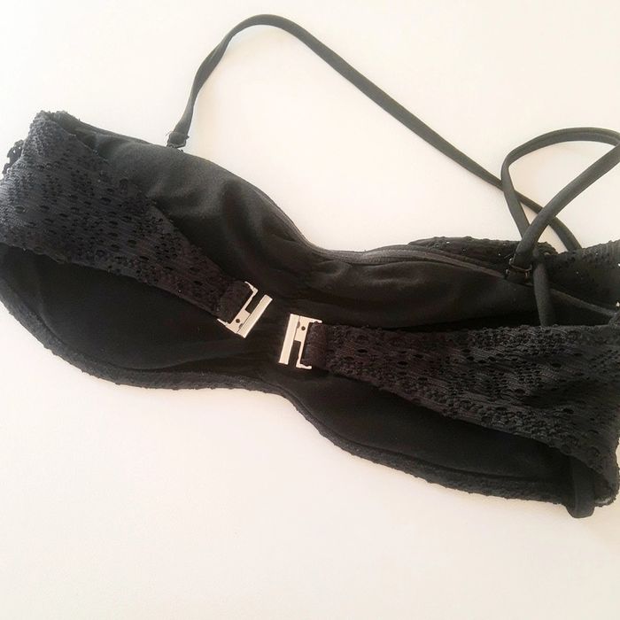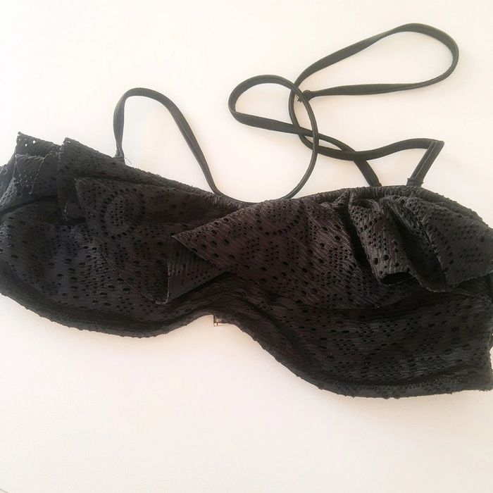 Haut de Maillot de bain de type bandeau rembourré dentelle noire et volants neuf - photo numéro 6