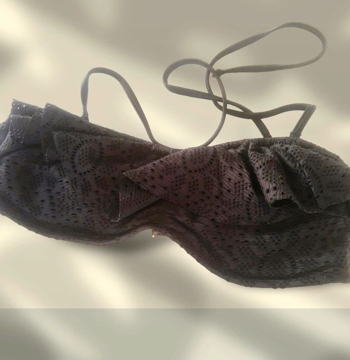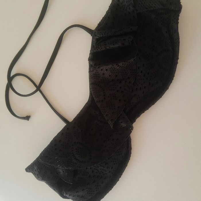 Haut de Maillot de bain de type bandeau rembourré dentelle noire et volants neuf - photo numéro 1