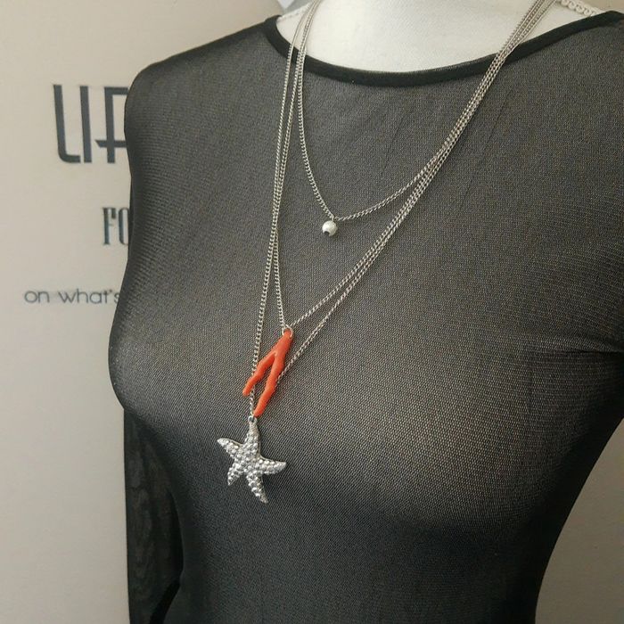Sautoir collier multi chaînes, thème bord de mer coloris argent corail neuf étiqueté Cache Cache - photo numéro 1