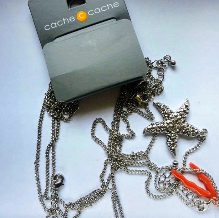 Sautoir collier multi chaînes, thème bord de mer coloris argent corail neuf étiqueté Cache Cache - photo numéro 5