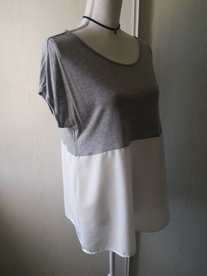 Blouse longue légère et fluide blanche et grise taille XL - photo numéro 1