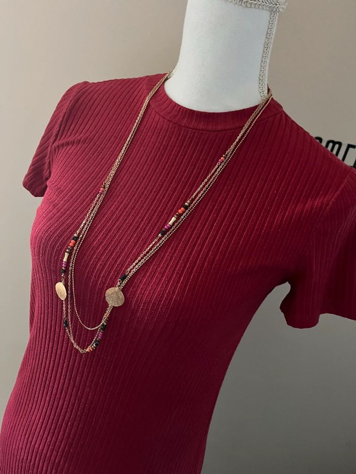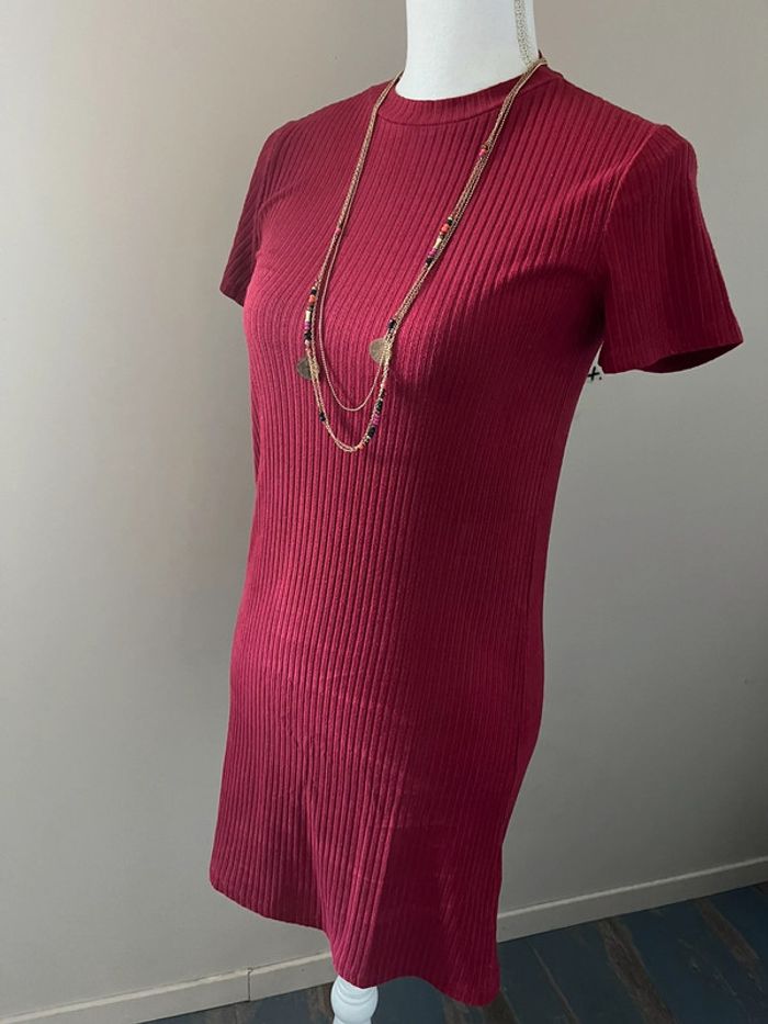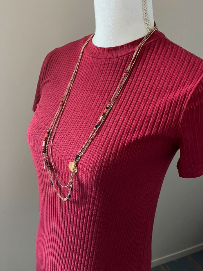 Robe t-shirt rouge bordeaux côtelée Zara - photo numéro 3