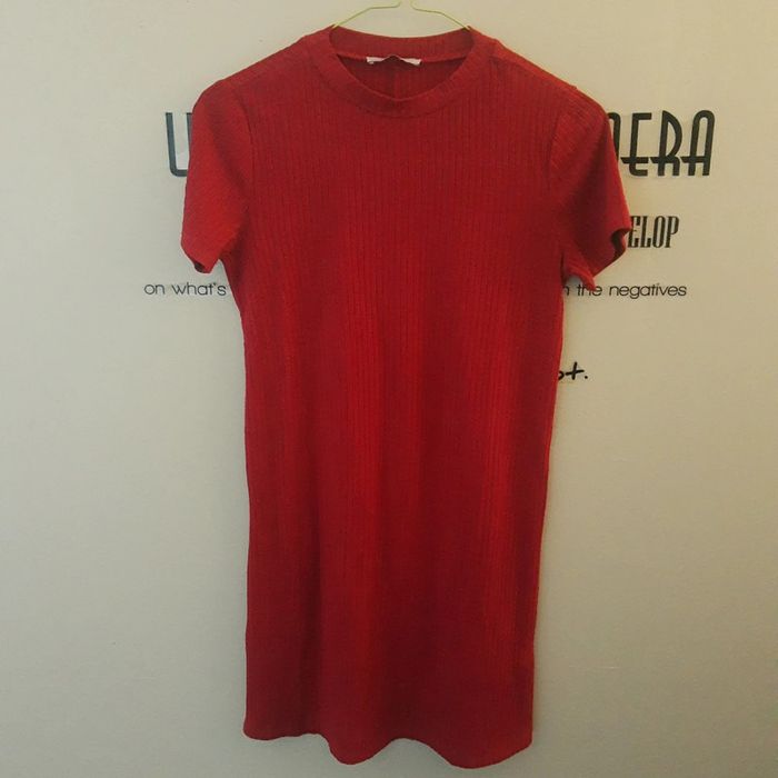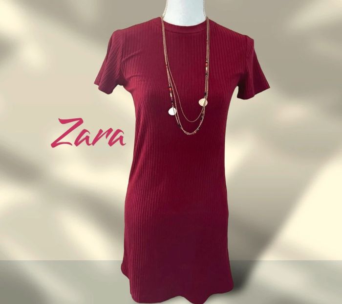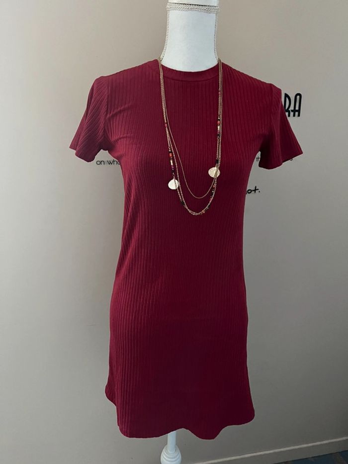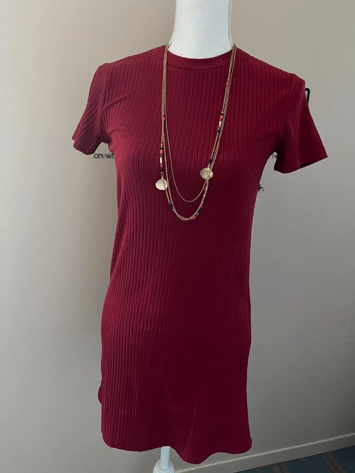 Robe t-shirt rouge bordeaux côtelée Zara - photo numéro 1