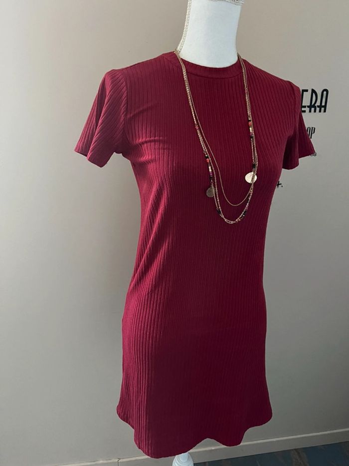 Robe t-shirt rouge bordeaux côtelée Zara - photo numéro 2