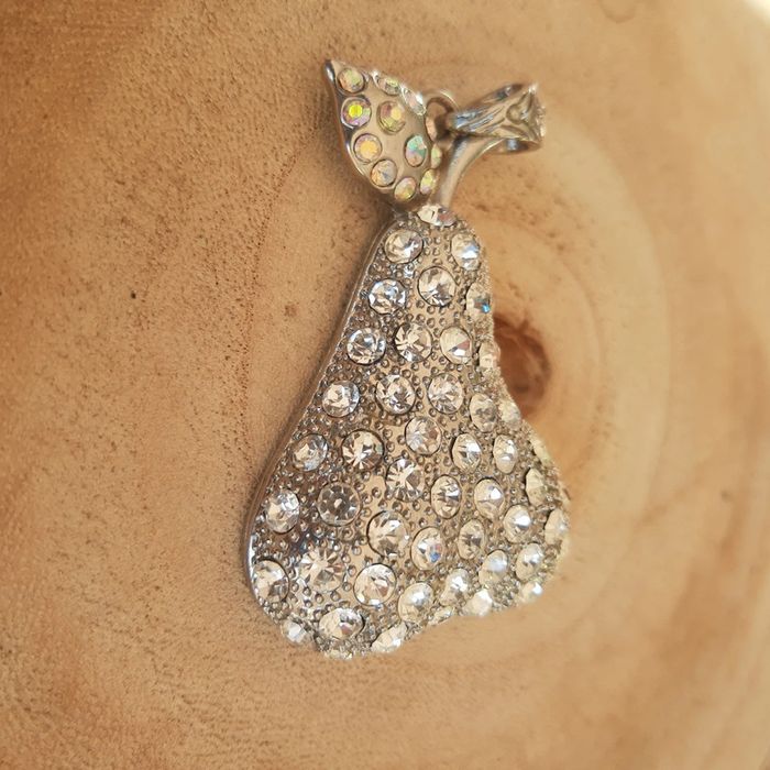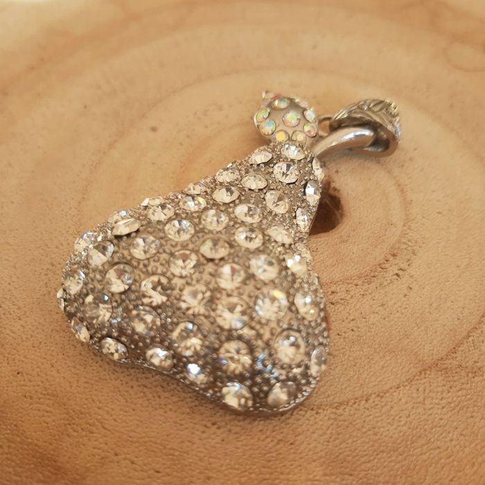 Grand pendentif brillant poire argentée bling bling - photo numéro 1