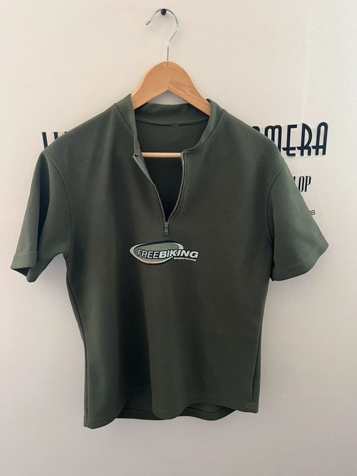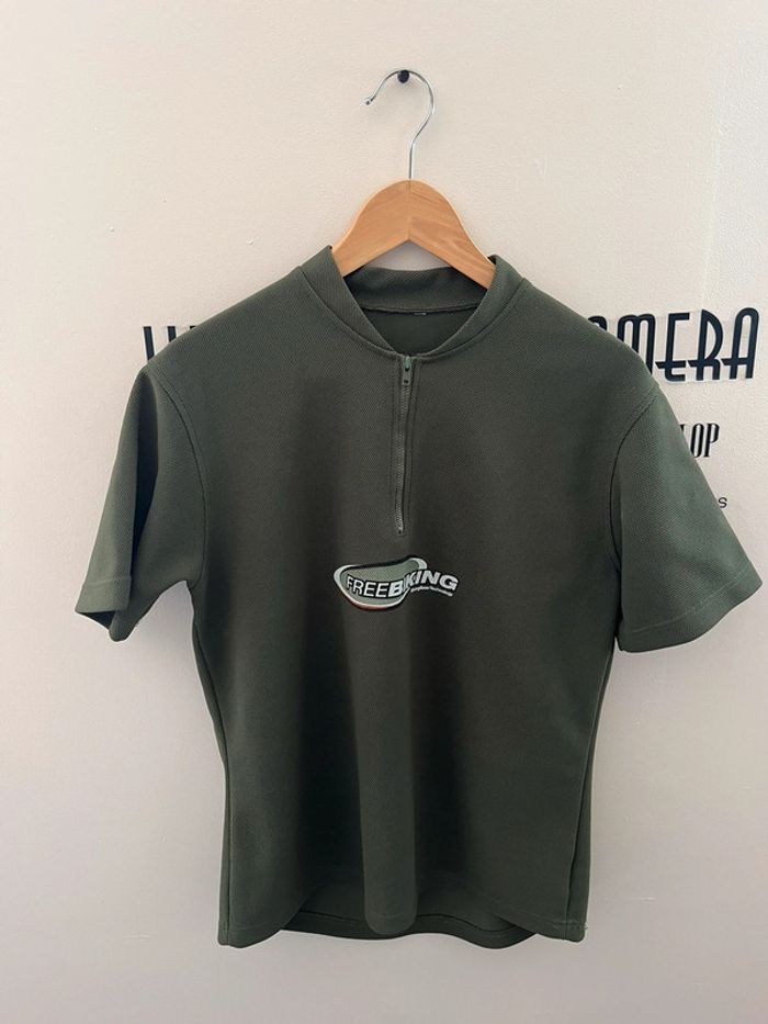 T-shirt sport maillot de cyclisme vert kaki en maille piquée Free Biking - photo numéro 1