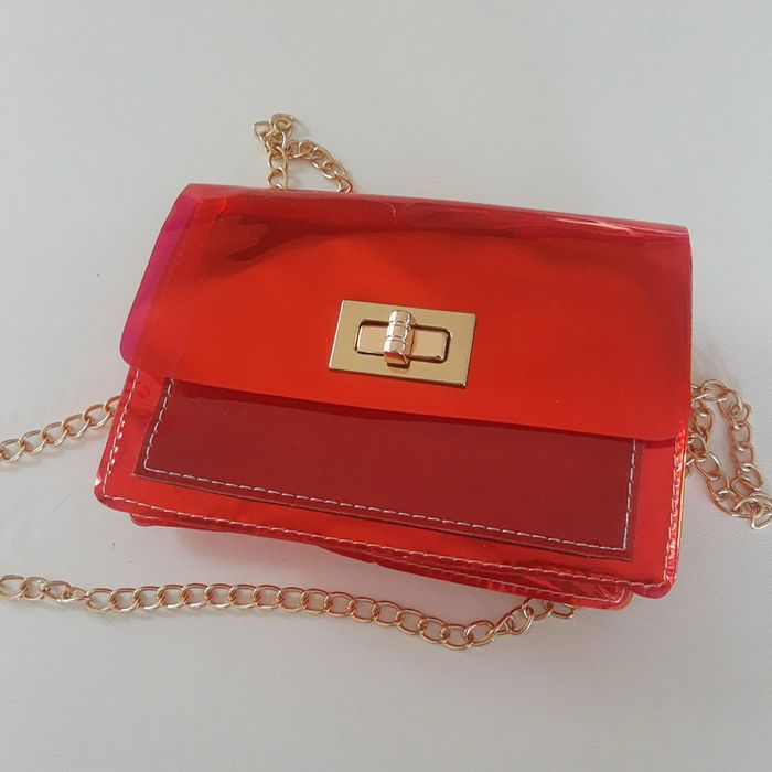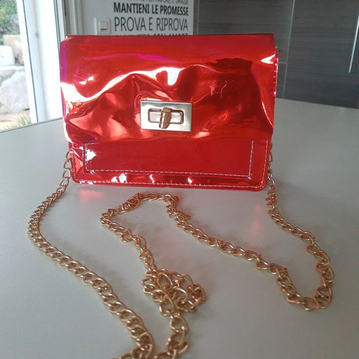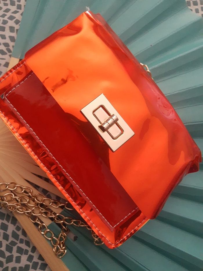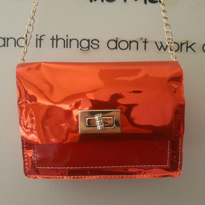 Sac bandoulière orange holographique petit format chaîne or neuf - photo numéro 1