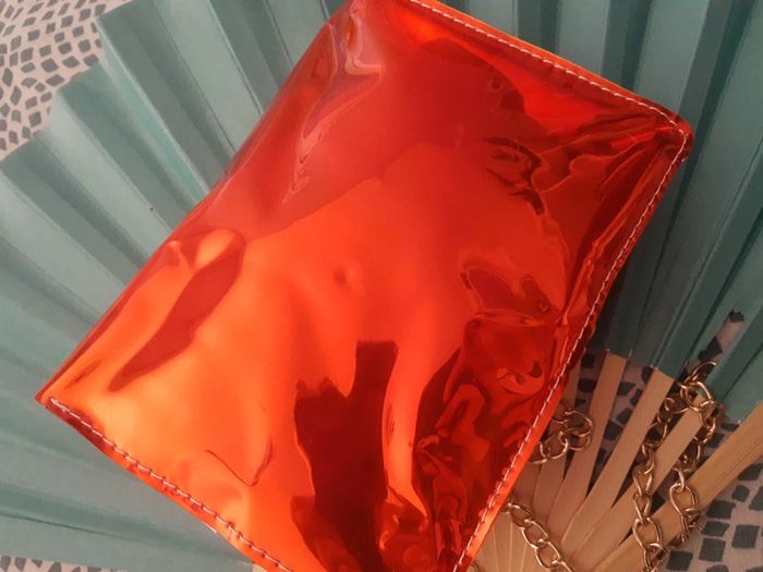 Sac bandoulière orange holographique petit format chaîne or neuf - photo numéro 8