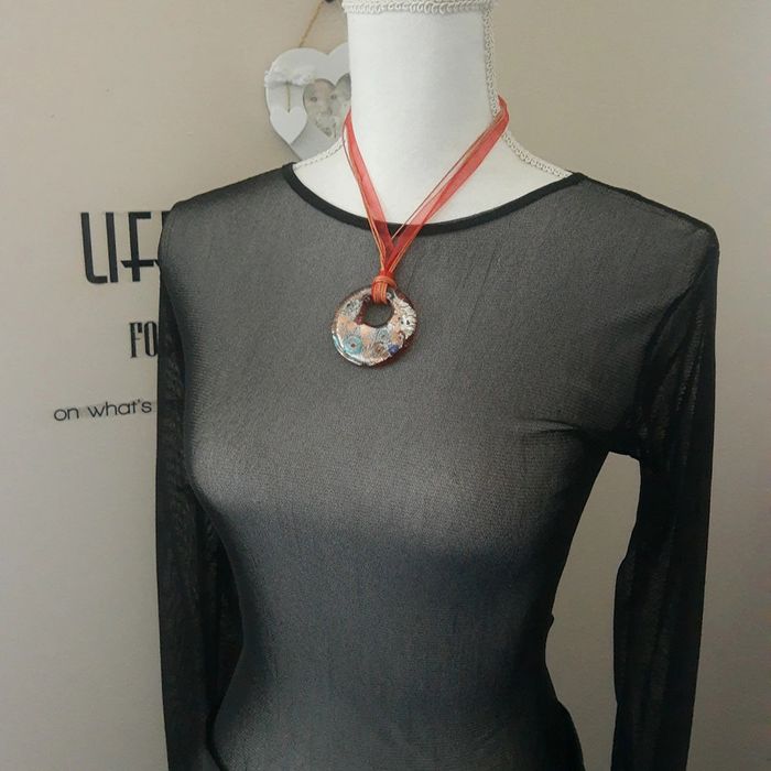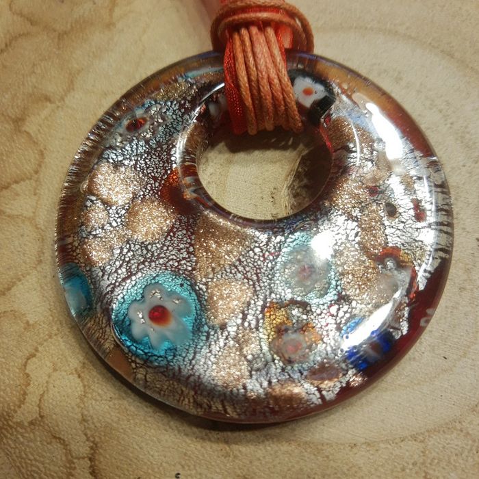 Très gros pendentif rond irrisé monté sur collier ruban comme neuf - photo numéro 4