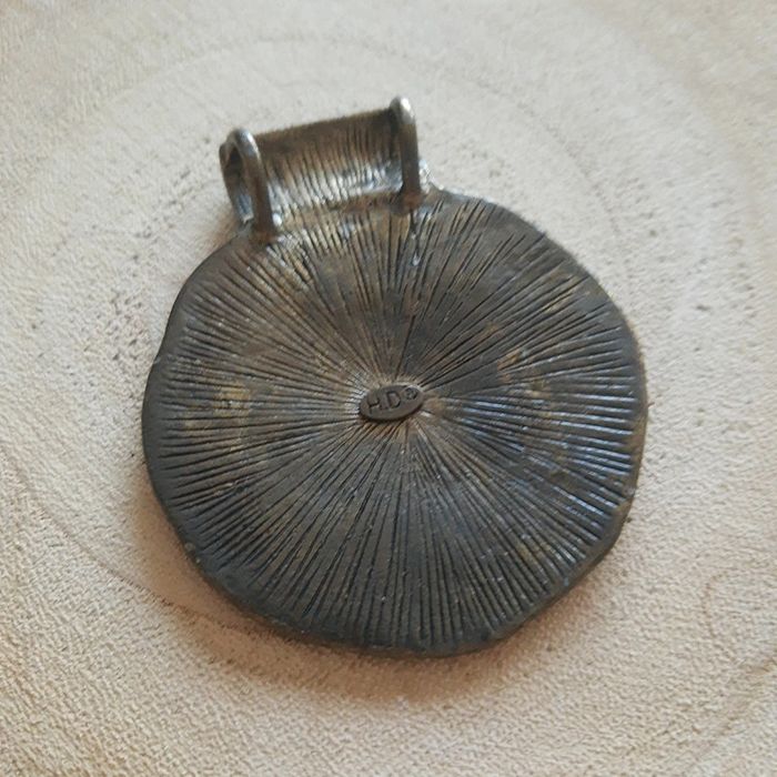 Gros pendentif rond en métal vieillit couleur bronze au dos, émaillé devant ,Style Ethnique - photo numéro 3