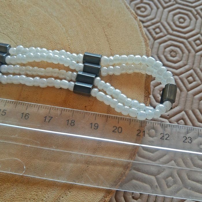 Bracelet original multi rangs magnétique blanc et gris ajustable - photo numéro 7