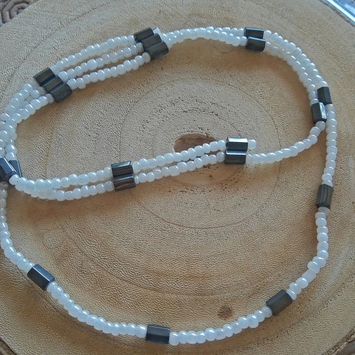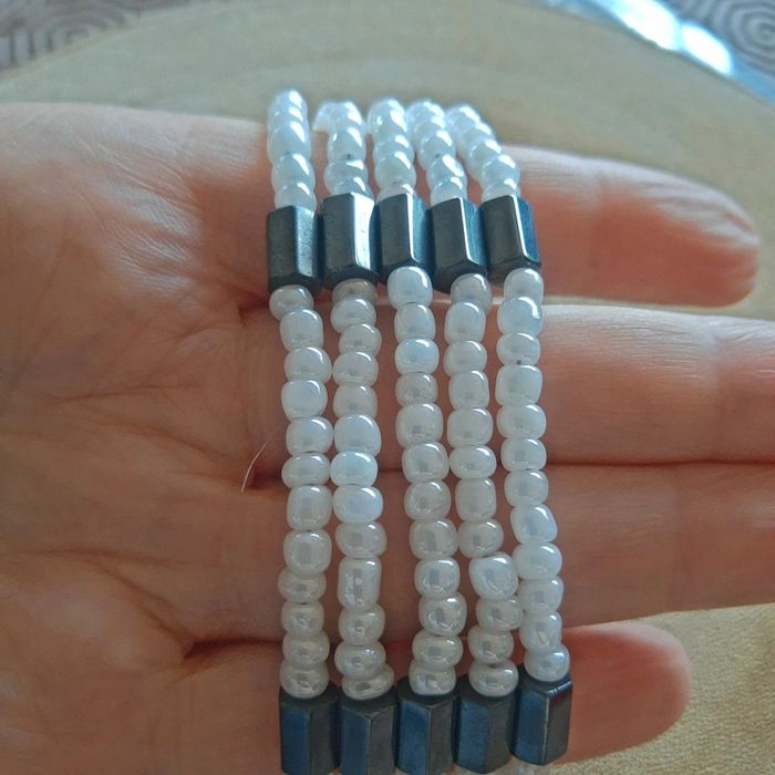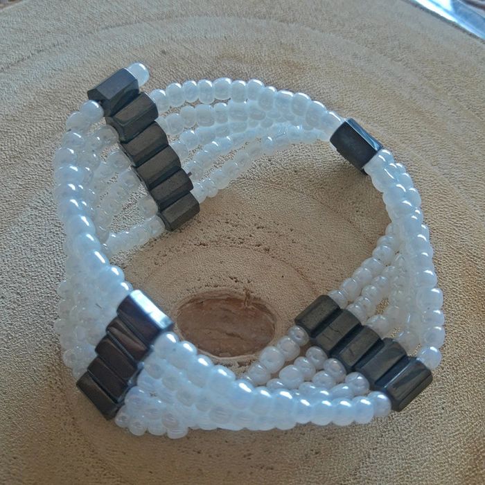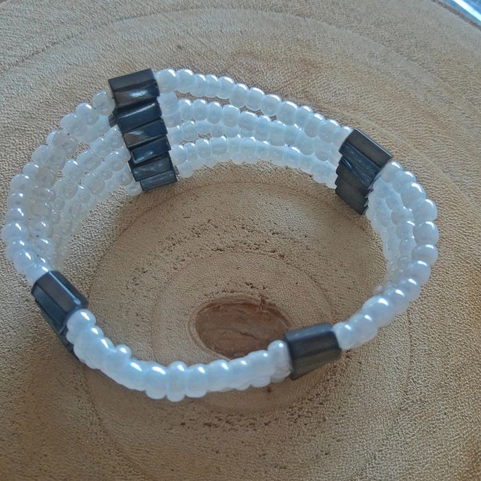Bracelet original multi rangs magnétique blanc et gris ajustable - photo numéro 1