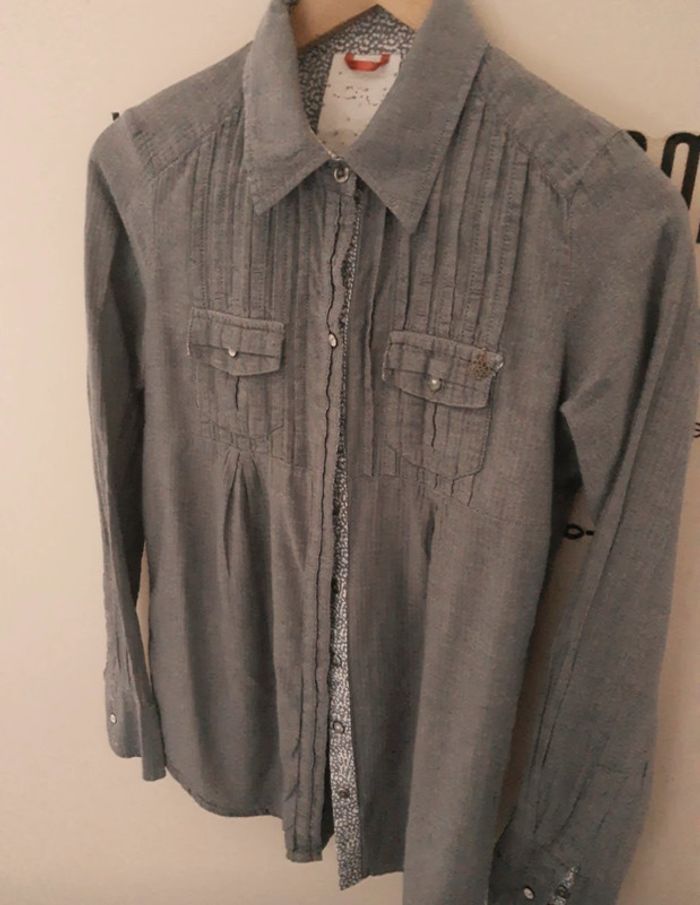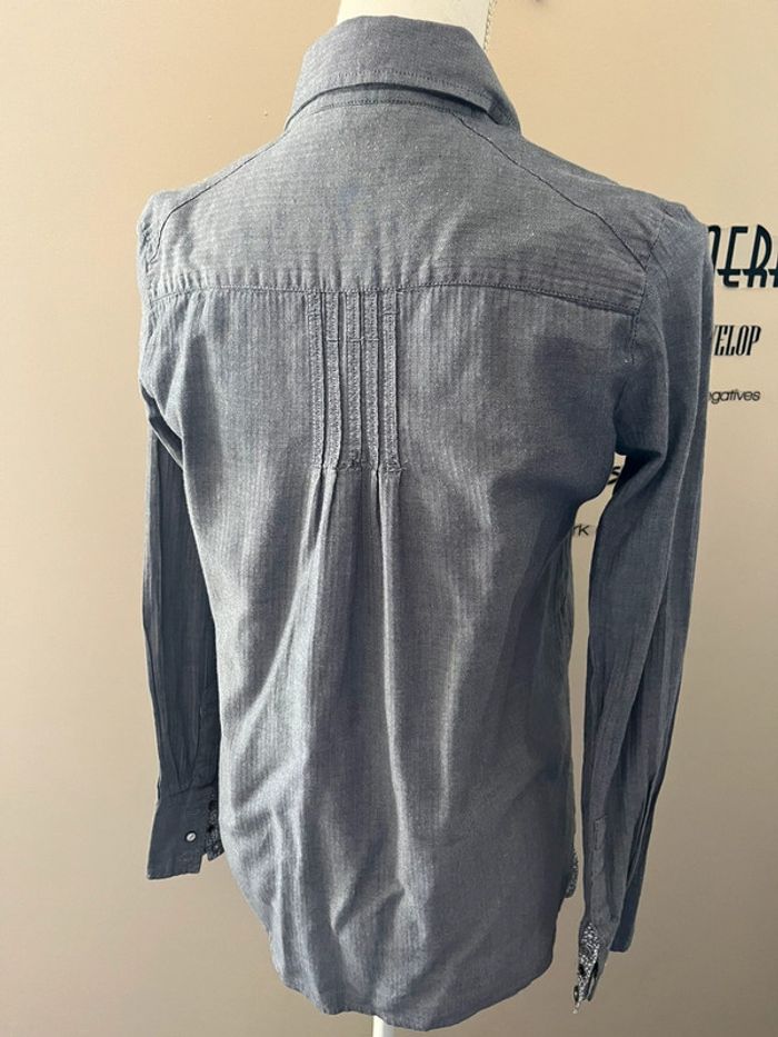 Superbe chemise longue femme de qualité grise manches longues motifs petits chevrons I.Code - photo numéro 6