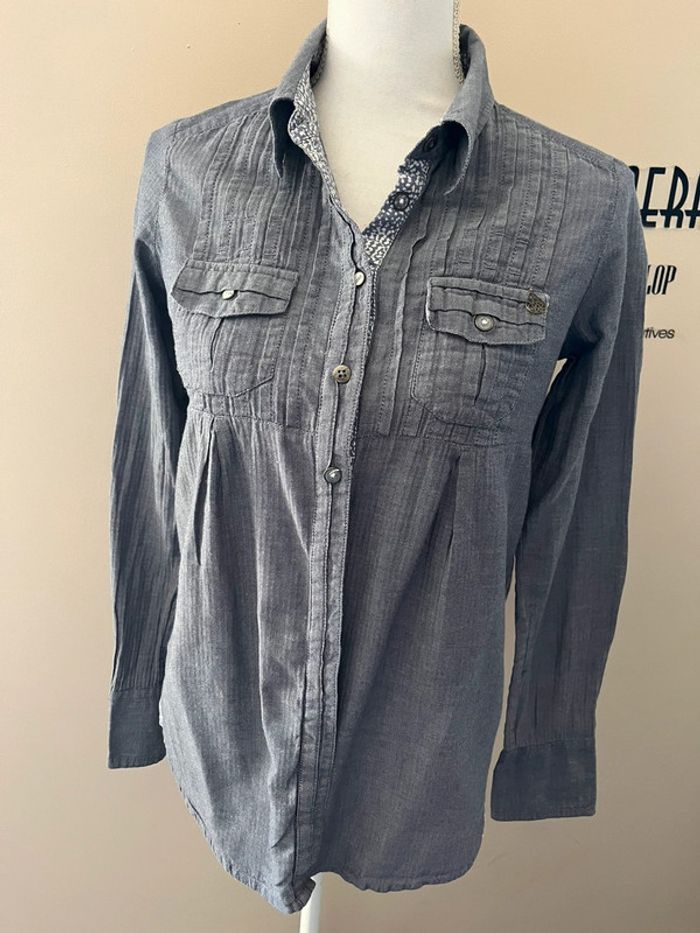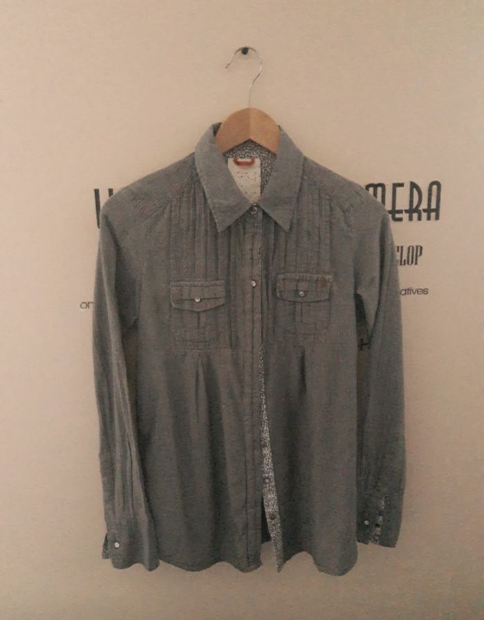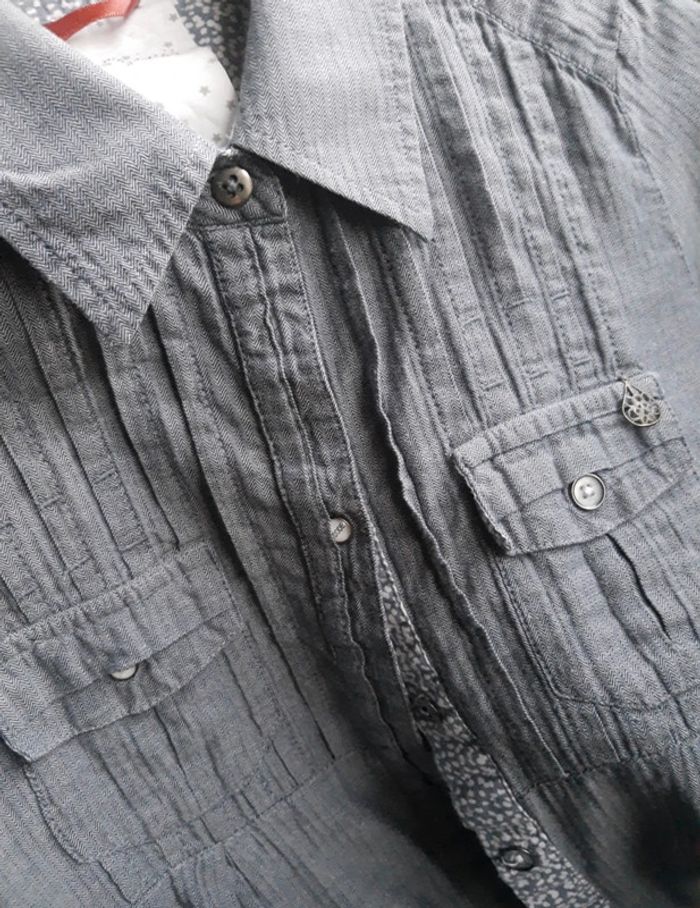 Superbe chemise longue femme de qualité grise manches longues motifs petits chevrons I.Code - photo numéro 7