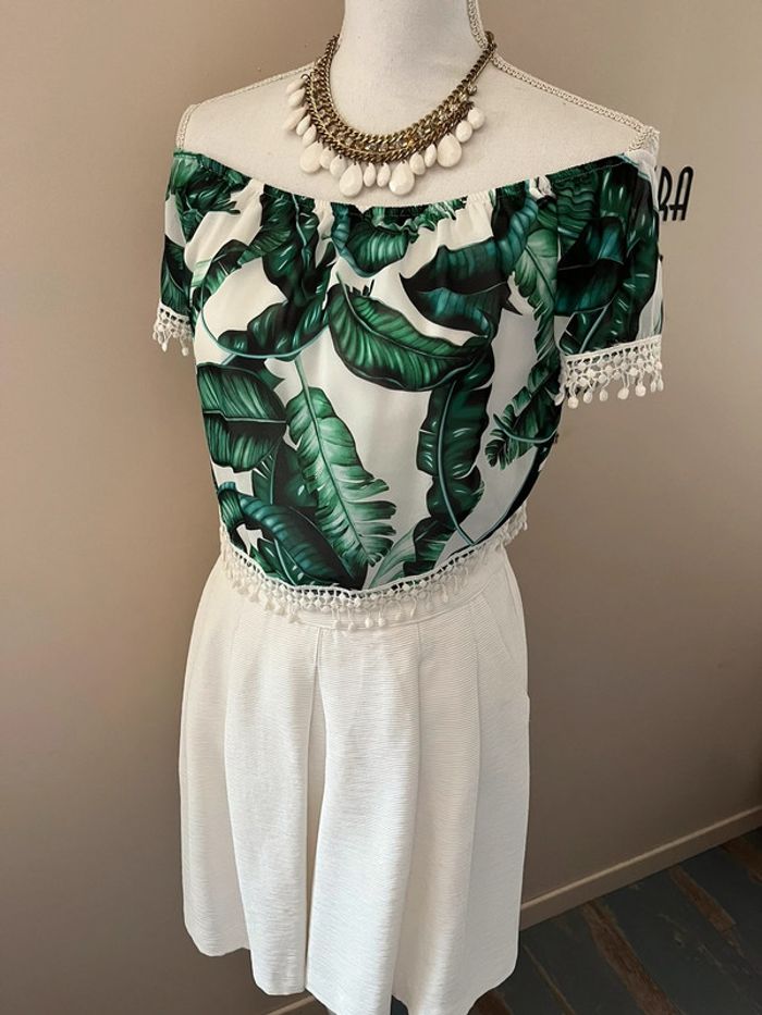 Collection printemps été ☀️ Préparez les beaux jours 👍 Joli top court, blanc imprimé motifs feuilles vertes Col bardot élastique à porter épaules dénudées ou non. Bordures dentelle blanche style crochet. Made in italy Taille unique portée ici par mon mannequin en 38 40 sans difficultés 👍 La jupe patineuse blanche est en vente dans mon dressing aussi 😉 Pour une tenue chic ou working girl moderne, mode ado aussi.. Très bon état général car peu porté ,cependant une maille filée dans la fronce élastique du col au dos voir dernières photos ⚠ D'autres tops courts dans mon dressing, lot possible. Envoi rapide et soigné 👍 Mes autres articles correspondant à votre recherche : Taille unique #cloclodalotu En S #cloclodalo36 en M #cloclodalo38 blanc #cloclodalowhitedream Vert #cloclodalogreendream Chics #cloclodalochic CONDITIONS DE VENTE N'hésitez pas à poser vos questions avant achat car je réponds volontiers et je suis très disponible mais je n'accepte pas les retours ensuite sauf erreur de ma part bien sûr ⚠️ Pensez aussi à faire des lots pour économiser les fdp 💡 Je suis ouverte aux négociations raisonnables si demandées avec politesse pour les lots de plusieurs articles seulement Bon shopping à tous 🤗 #topbretelles #topcourt #topblanc #topimprimé #sheinstyle #toptropical #croptop #croptopblanc #colbardot #croptopimprimé #infroissable #croptop38 #blousebretelles #blouseblanche #femmeete38 #ete3638 #modeado #topado #jennifer38 #imprimefloral #imprimécoloré #été38 #mode38 #blanc38 #coton38 #imprimévégétal #impriméfeuillage #imprimétropical #epaulesdenudées #impriméfleuri #soirée38 #chic3638 #mariage3638 #ceremonie3638 #fete38 #fête38 #fête3638 #sexy3638 #madeinitaly #crop