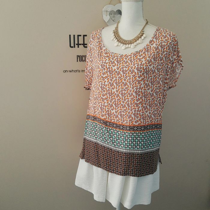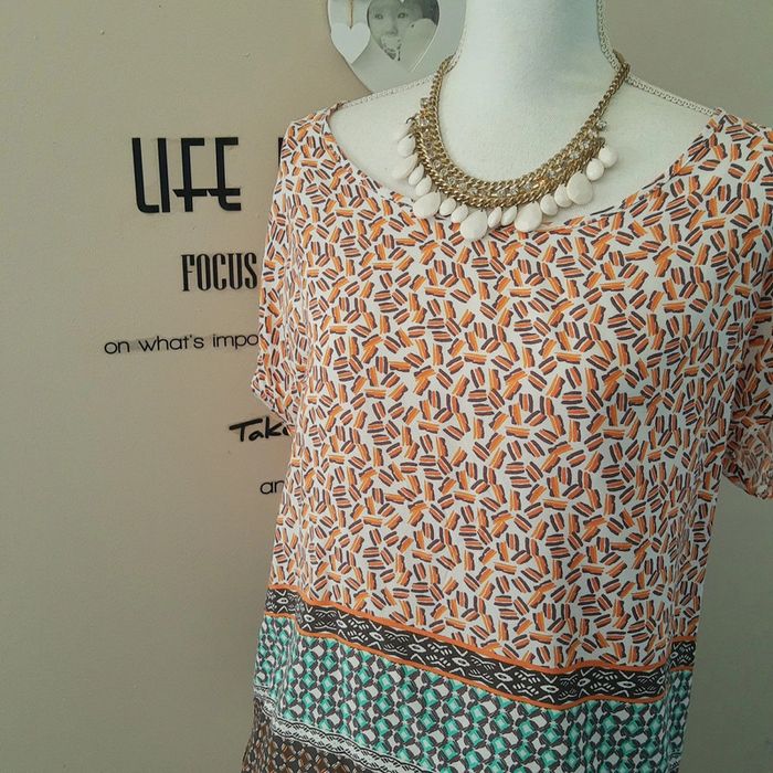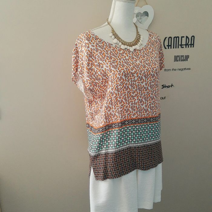 Blouse légère et fluide à manches courte imprimé motifs colorés géométriques ethniques taille 42 - photo numéro 1
