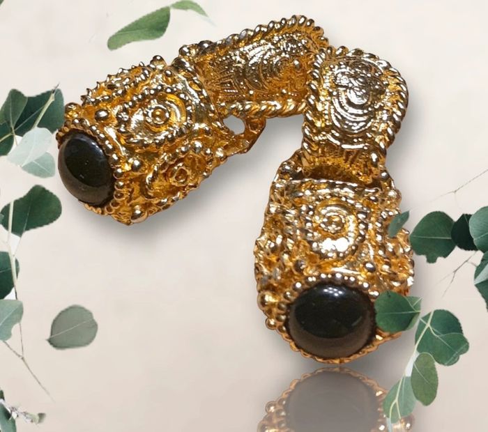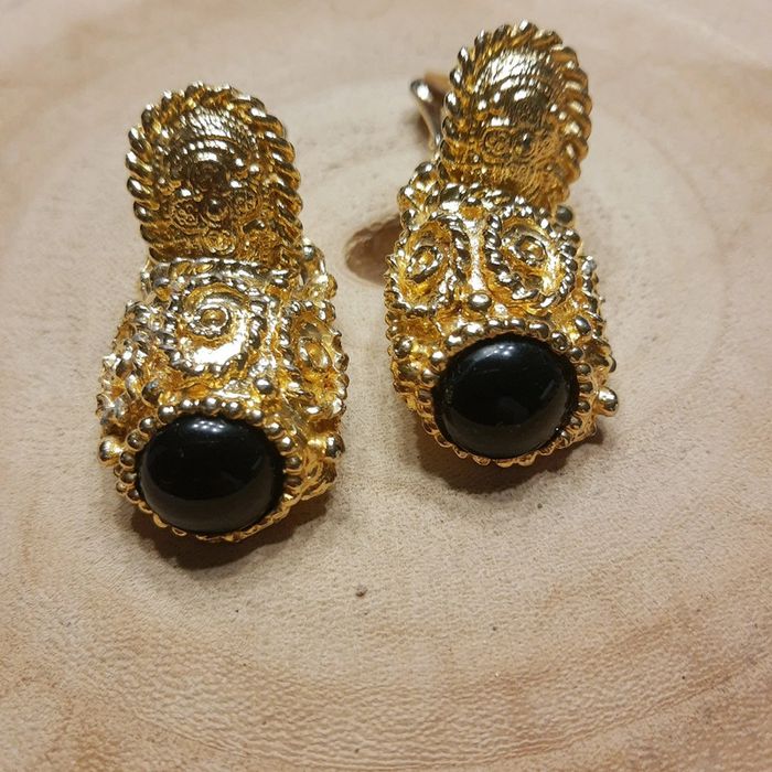 Magnifiques boucles d'oreilles à pinces rétro vintage dorées, en deux parties . La partie pendante comporte un gros cabochon noir. Système de fermeture par pince convenant également aux oreilles non percées. Semble être du métal doré (à l'or je suppose vu son éclat malgré les années) mais je n'ai trouvé aucun poinçon. Véritablement vintage car appartenait à une personne très âgée. Elles compléterons parfaitement une tenue rétro chic 👌 Merci de regarder les photos elles font parties de la description et vous recevrez exactement ce que vous voyez, je ne cache rien. Je réponds volontiers à vos questions supplémentaires. Je n'y ai aucun intérêt et vous non plus 😉 Envoi rapide et soigné. Beaucoup d'autres bijoux vintage dans mon dressing 👍 Mes autres bijoux #cloclodalobijoux Mes autres articles dorés #cloclodalogolddream Mes autres articles noir #cloclodaloblackdream Mes autres articles vintage #cloclodalovintagestyle Pensez à poser vos questions avant achat car je réponds volontiers et je suis très disponible mais je n'accepte pas de retour ensuite sauf erreur de ma part bien sûr ⚠️ #bijouxvintage #bijouxretrochic #bijouxretro #bijouxretrovintage #bijouxartdeco #bijouxdorés #bijouxplaqueor #bouclesdoreillespinces #bouclesdoreillesvintage #bouclesdoreillesartdeco #bouclesdoreillesretrochic #bouclesdoreillesretro #bouclesdoreillesretrovintage #vintage #pepitevintage #vintagechic #retrochic #pépite #pepitevinted #gift #vintedgift #vintedgiftidea #idéecadeauvintage #idéecadeaufemme #idéecadeaugirly #idéecadeaucopine #ideecadeauamie #idéecadeaubijoux #idéecadeaufête #idéecadeau #idéecadeaumaman