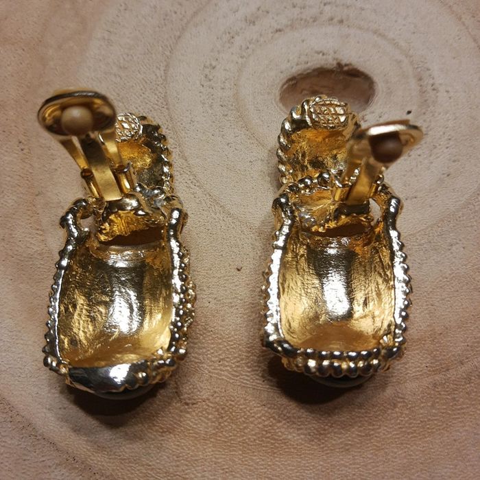 Magnifiques boucles d'oreilles pendantes à pinces rétro vintage dorées - photo numéro 9