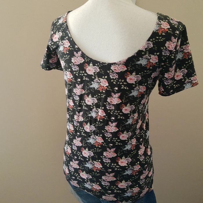 T-shirt coton doux imprimé motifs fleurs pastel marque Mim taille M - photo numéro 6