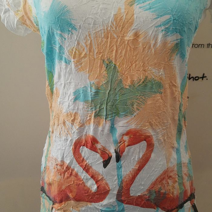 Blouse col V blanche imprimée motif flamands rose - photo numéro 1